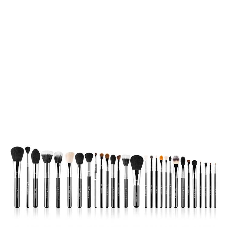 exclusieve selectie van high performance synthetische vezels ontworpen om traditioneel dierlijk haar te overtreffen. Technologisch geavanceerde filamenten met gespecialiseerde tips speciaal ontwikkeld om cream en poeder producten vast te houden zonder enige absorptie in de haren. Gebouwd op duurzaamheid, de Sigmatech 䋢 vezels zijn antibacterieel, hypoallergeen, en zullen ook na meerdere wasbeurten hun oorspronkelijke vorm en kleur behouden.